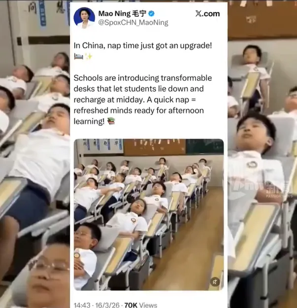 (2)①守护青少年身心健康。从“趴睡”变“躺睡”,改善了学生睡眠质量,有利于保护视力和脊柱健康,体现了对下一代成长的关怀。(2分)