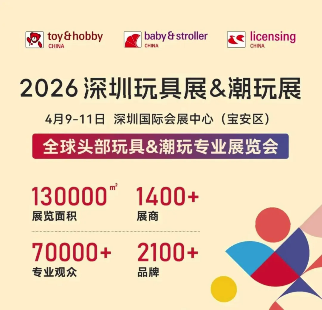 倒计时20天!备受瞩目的2026深圳玩具展&潮玩展作为每年深圳地区玩具行业人气火爆的展会活动,即将于2026年4月9-11日在深圳宝安国际会展中心隆重举办。这次展会不仅是一场简单品牌集结,更像是一次关于“玩具”的年度盛典。本次展会汇聚1400多家参展企业,涵盖电子电动、塑胶玩具、木制、纸板类玩具、娃娃、布毛绒玩具、积木、拼插玩具、充气玩具、儿童活动及运动产品、骑乘玩具智能玩具、模型玩具、DIY玩具、音乐玩具等品类,距离展会开幕仅剩20天,小编特地整理了逛展指南,或许能给你一点新思路,收藏打卡不迷路,收获满满!