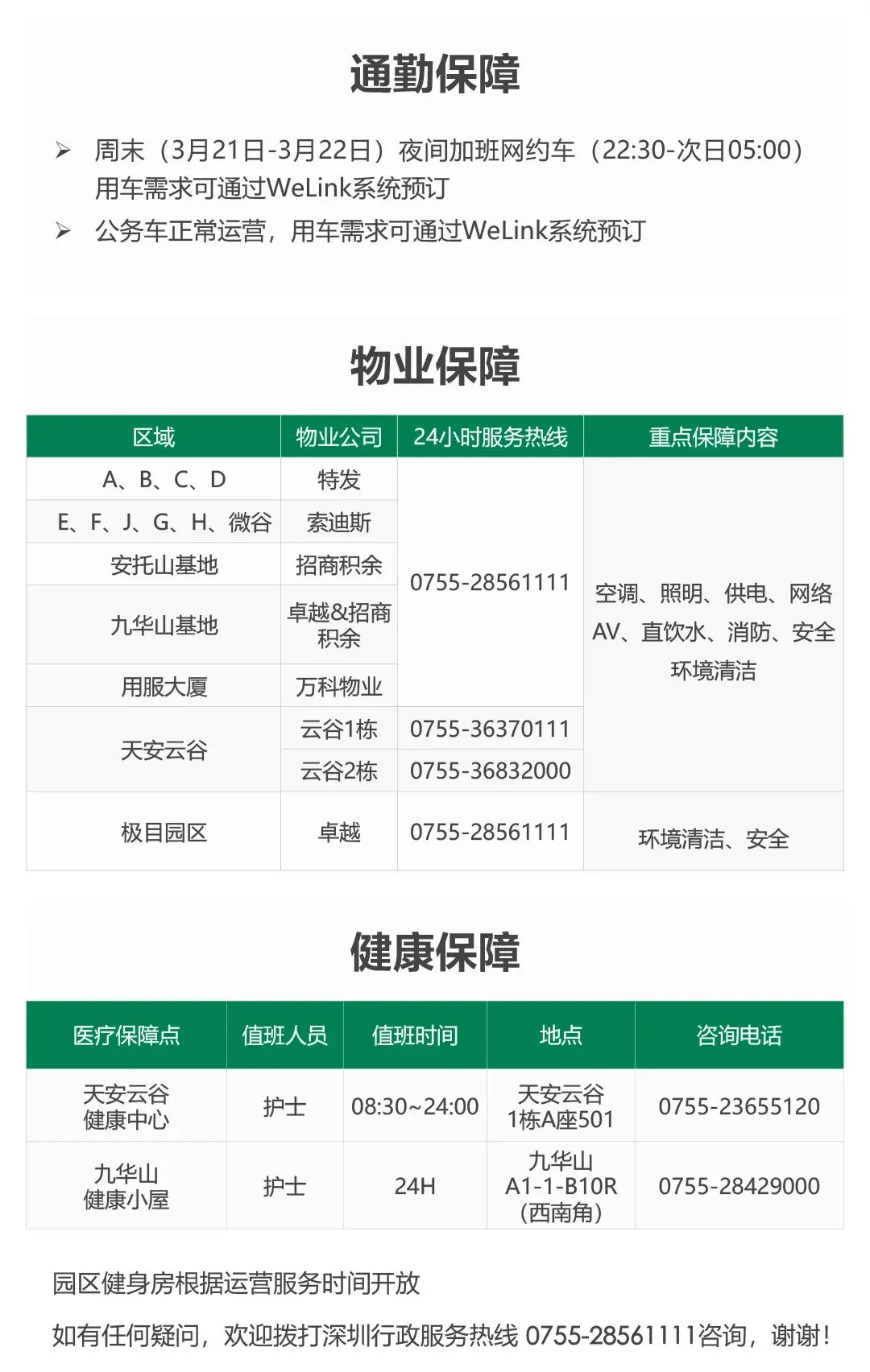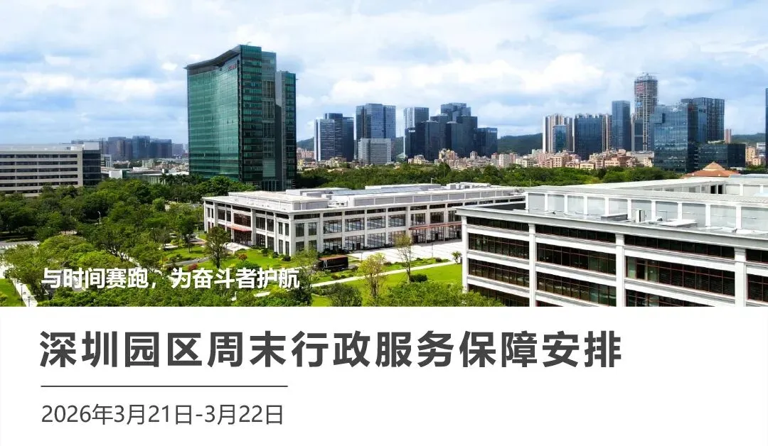 >深圳园区周末(3月21日-3月22日)行政服务保障安排
