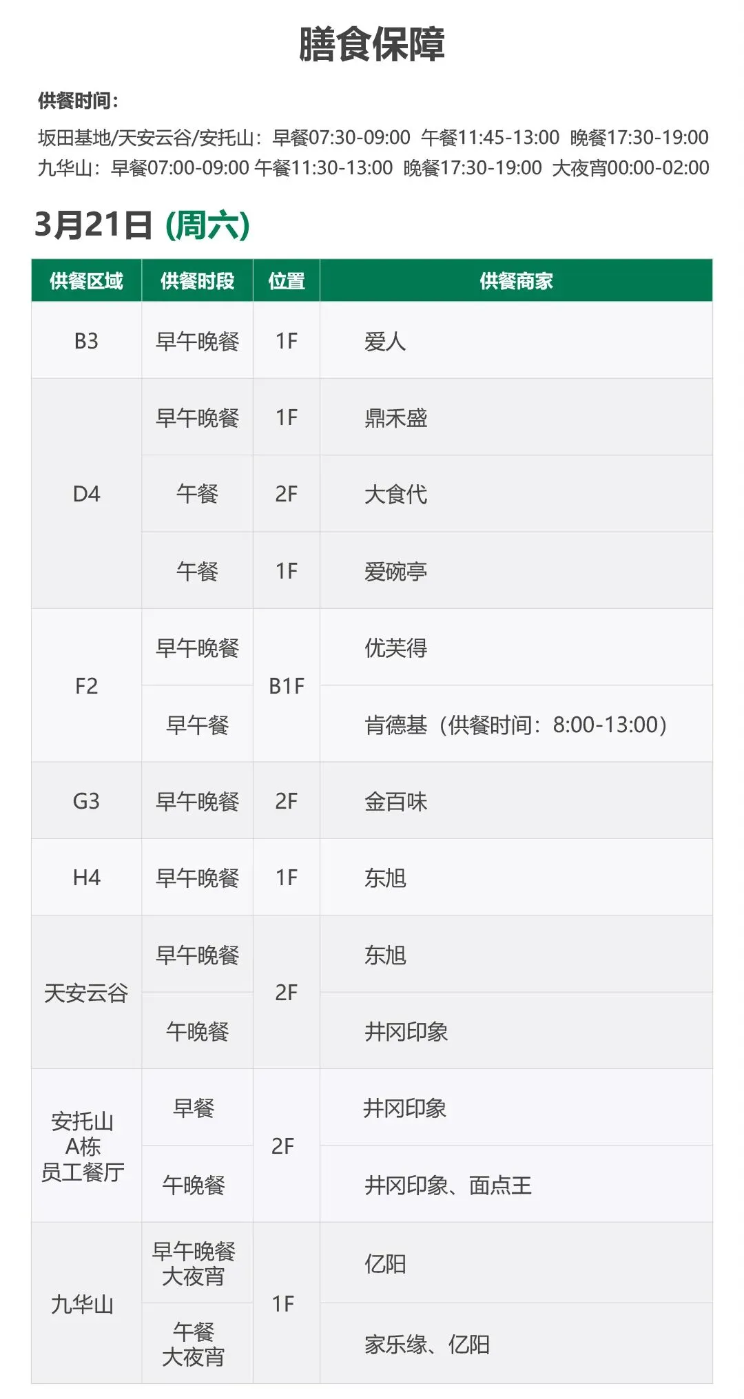 深圳园区周末(3月21日-3月22日)行政服务保障安排