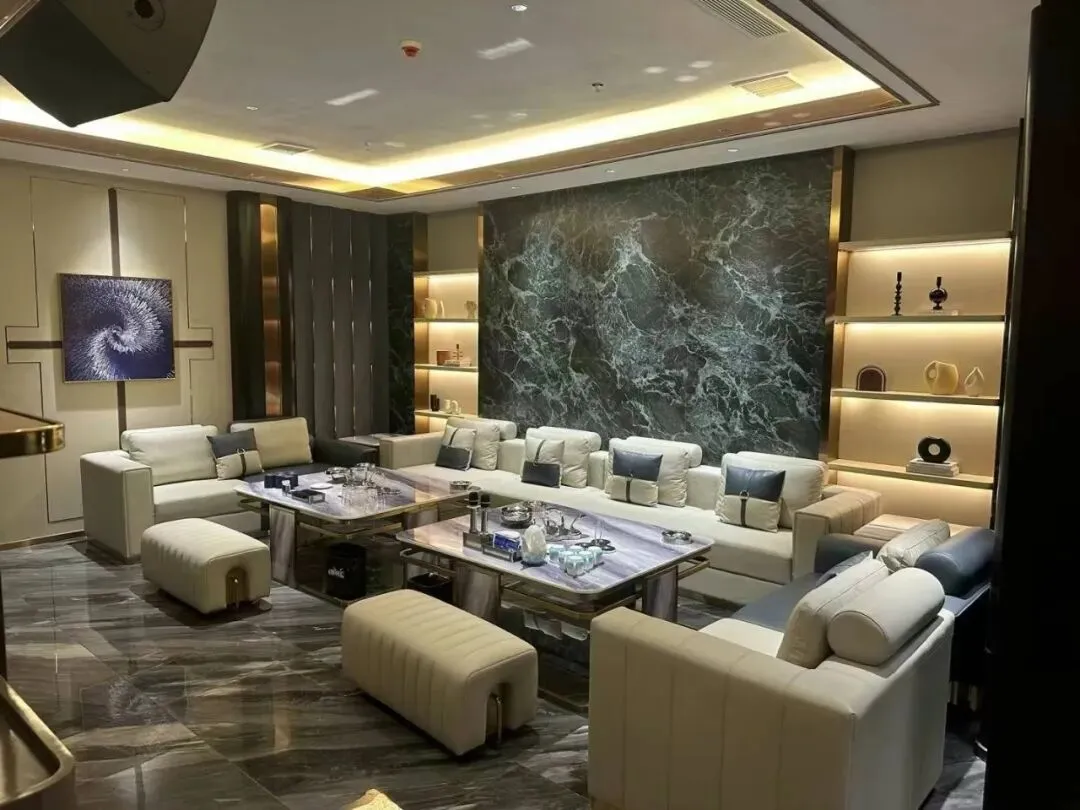 走进大堂,璀璨的水晶吊灯散发着迷人的光芒,大理石地面光洁如镜,仿佛能倒映出你内心的梦想。宽敞明亮的休息区,摆放着舒适柔软的沙发,搭配着精致的茶几和绿植,让你在忙碌之余,能够享受到片刻的宁静与放松。而包厢内的装修更是独具匠心,每一个包厢都有自己独特的主题风格,从温馨浪漫的欧式风格,到时尚动感的现代风格,再到古朴典雅的中式风格,满足了不同客户的个性化需求。