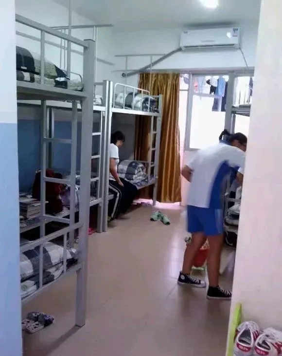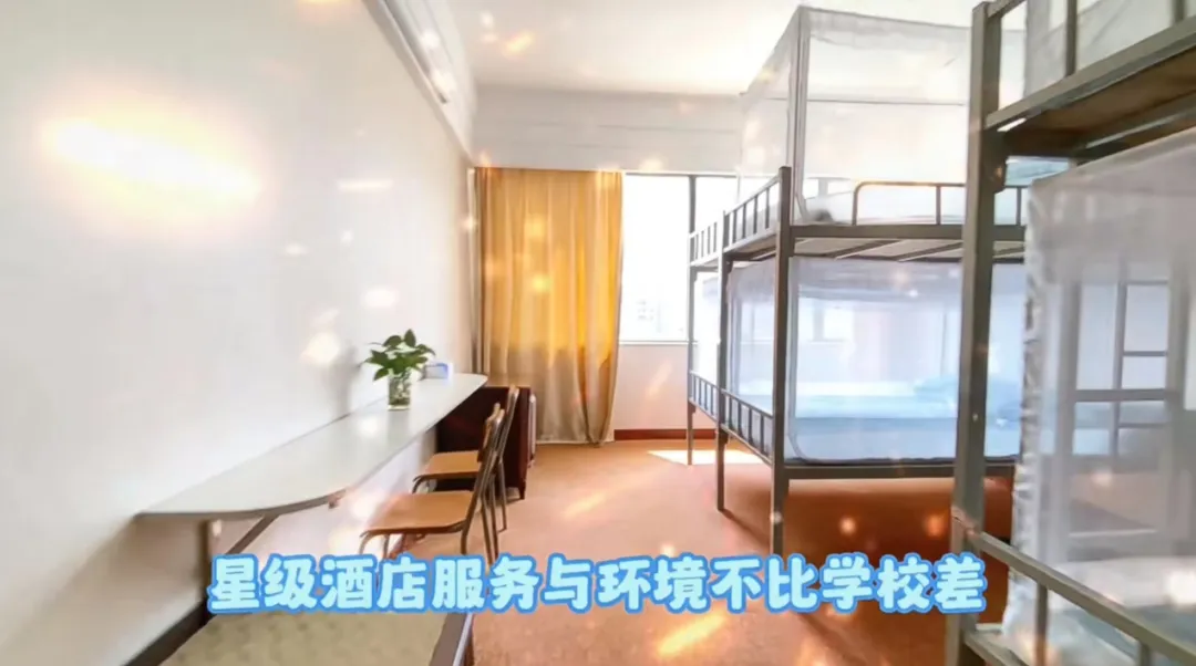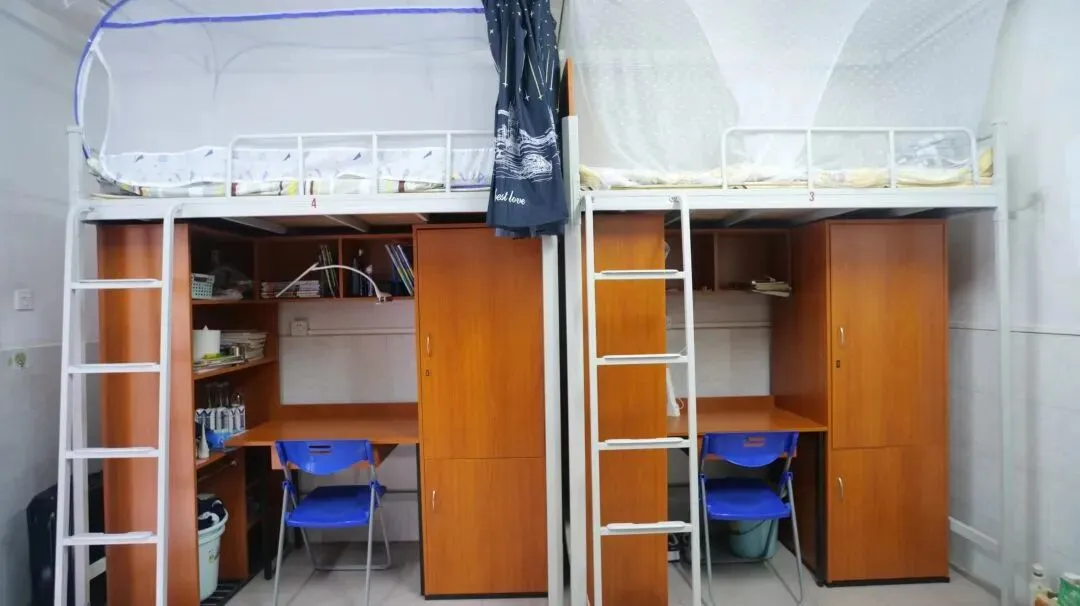 龙高的学生公寓均为六人间(配备洗衣房),新安装了全新实木床,每间宿舍配备2-3个独立卫浴,阳台、衣柜、空调、饮水机、吹风筒等生活设施一应俱全。