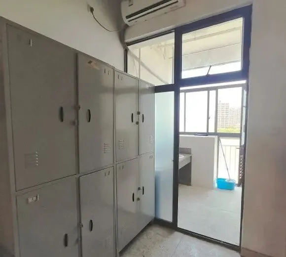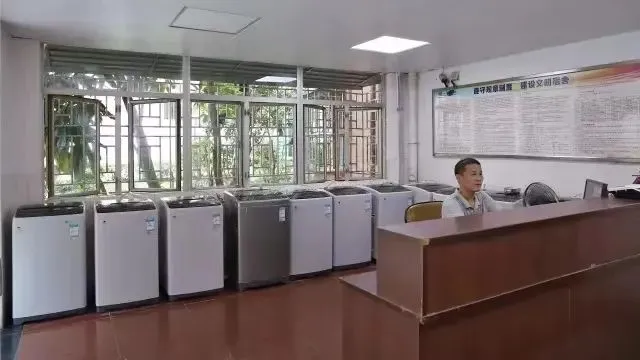每个宿舍有两个大柜子,每个大柜子有4个小格子。每层配备饮水机、洗衣房。