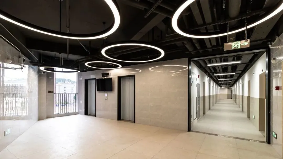 学生宿舍楼安装有电梯,为学生上下楼提供便利。每个宿舍均配备2个独立卫浴设施,包括独立的洗脸池、衣柜、空调以及独立阳台,充分满足学生的日常生活需求,为学生提供舒适便捷的居住环境。