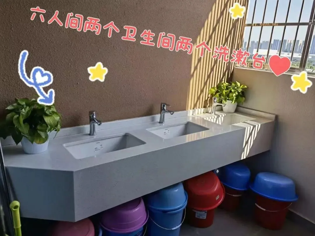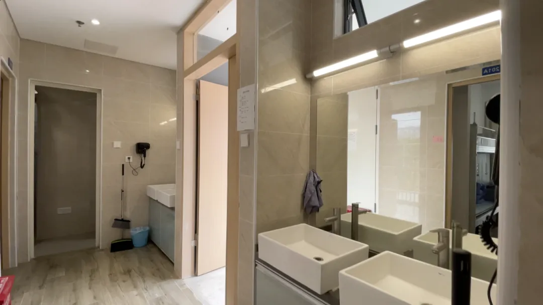 每个宿舍都有空调、独立阳台和独立卫生间,24 小时供应热水,让同学们随时都能享受舒适的沐浴体验。每层楼还设有一间公共澡堂和洗衣房,且水电费由学校承担,同学们无需为此操心。
