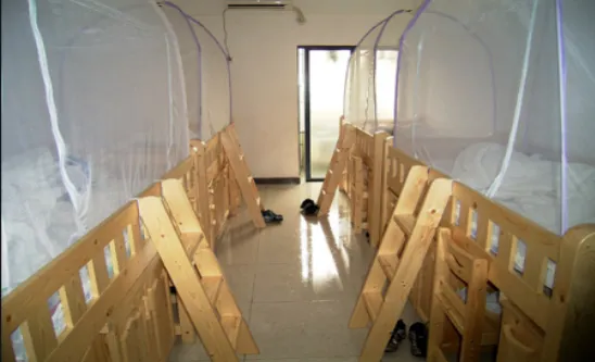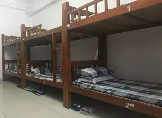 6人/间,上下铺,木床或者铁床,将陆续更换为木床。
