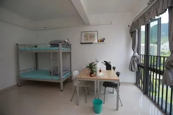 上床下桌,两间独立卫浴,带阳台(宽1.2米,长3-4米),可以透过阳台欣赏到海景。洗衣房也配备了西门子洗衣机。