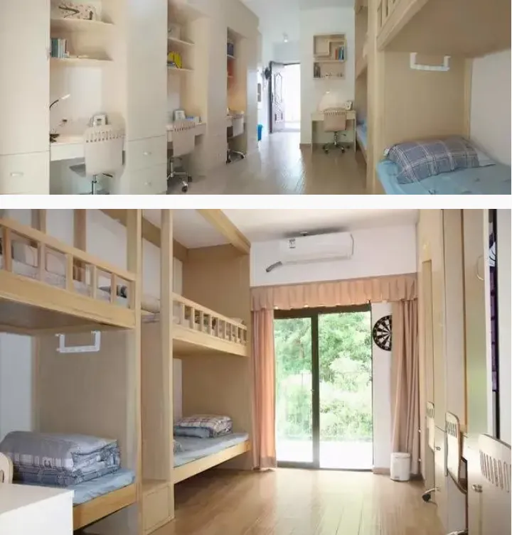 宿舍有四人间、双人间和多人间等等。部分户型是相互打通的。