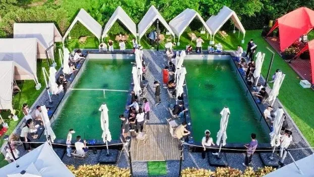 Seven.H城市营地,7000㎡城市户外团建新地标——延展的绿意草坪与专业运营团队,为企业定制高效活力融合场;一站式承载公司团建、开心钓虾、品牌发布、户外拓展、生日宴会、亲子派对、露天KTV、音乐会演出、球赛观看……,配专业钓虾池、秘制经典烤鸡、极品全牛烤肉、围炉煮茶、特色烧烤及精品咖啡等🎈,让每一场相聚都化作星空电影院、草坪音乐派对与主题拓展的持久记忆。