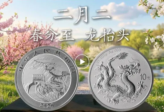 2026年开年,中国人民银行发行的第一个贵金属纪念币项目就是2026版中国龙银质纪念币。该币背面图案以中国龙为主,辅以祥云相伴,刻画生动;背景用螺旋纹辅助,透出中式韵律的美感。整体传递出吉祥美好、积极向上的蓬勃之力。正面鸟瞰视角的长城与中国龙的形象相互呼应,恰如这“龙抬头”之日,巨龙昂首,气贯长虹。