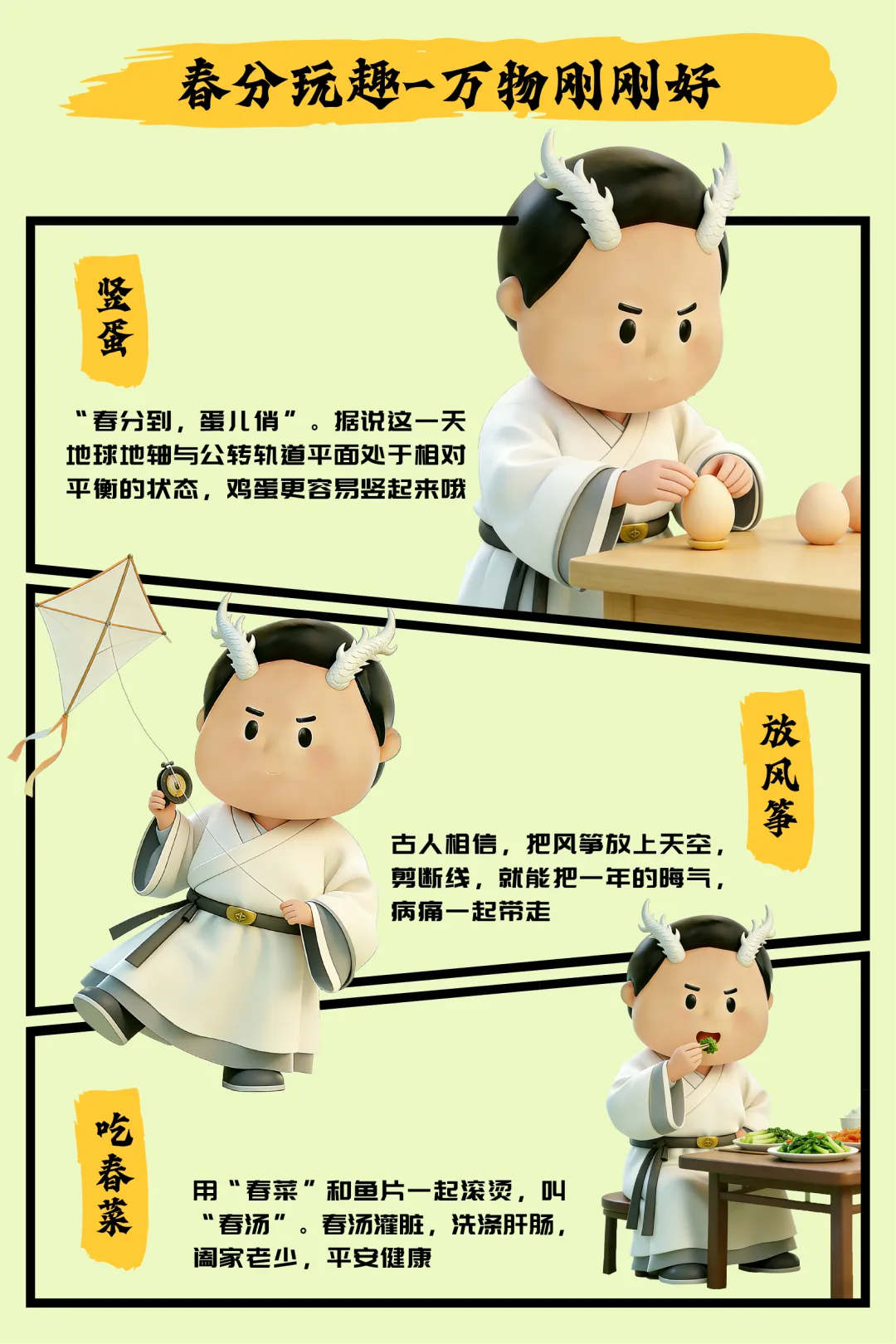 1、今日春分,该吃些什么?“春分”恰逢“龙抬头”,难得一遇今天是3月20日,二十四节气中的春分,同时今天也是农历二月初二,民间传统节日“龙抬头”,天文与民俗在此交汇,昼夜均而寒暑平,龙角星而从云起,仿佛是天地一次精妙的安排。在春分的习俗里,最有名的当属“竖蛋”。俗话说“春分到,蛋儿俏”,人们相信这一天地球地轴平衡,最容易把鸡蛋立起来。这看似游戏的举动,其实寄托着人们对安稳生活的向往。此外,还有吃春菜、送春牛、粘雀子嘴……这些朴素的仪式,都是农人对风调雨顺的祈愿。2022年发行的二十四节气(光阴的故事)8克银币(春分),背面图案展现的就是春分时节“放风筝”“竖蛋”的习俗,方寸之间,定格了这份春日的意趣。