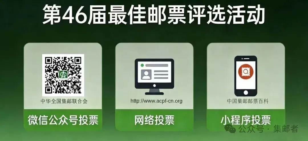 第46届最佳邮票评选活动即将开始,活动继续采用邮资明信片选票、网络、微信三种方式投票,请收下这份投票操作说明及评选办法~