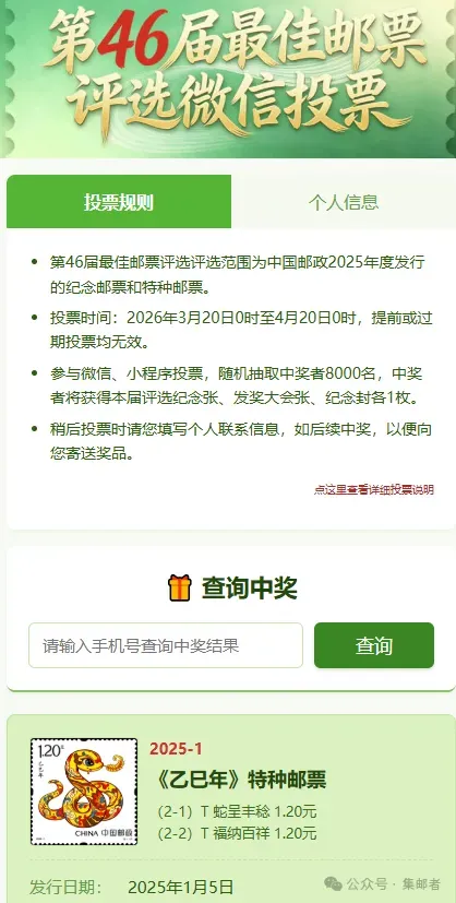 6、第46届佳邮评选活动,20号正式开启投票了!