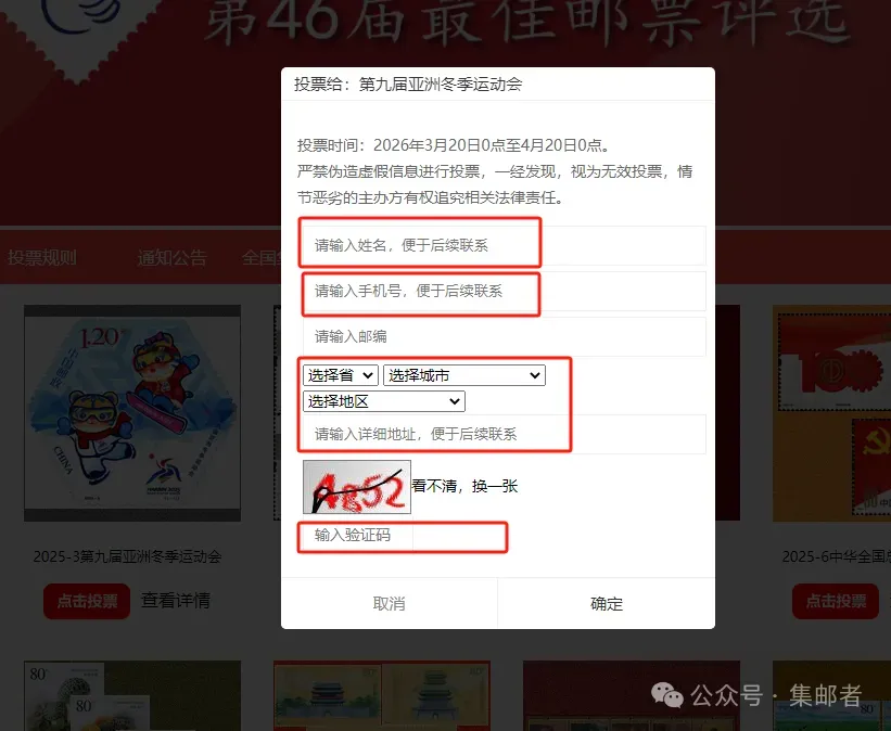 3.投票时填写姓名、手机号、联系地址等信息。如投票失败,请查看系统提示,及时修正信息。