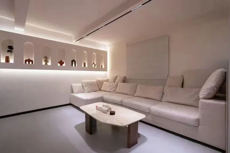 休闲厅:75寸智能电视 | 娱乐 | 休息 | 追剧 | 真皮沙发 | 办公
