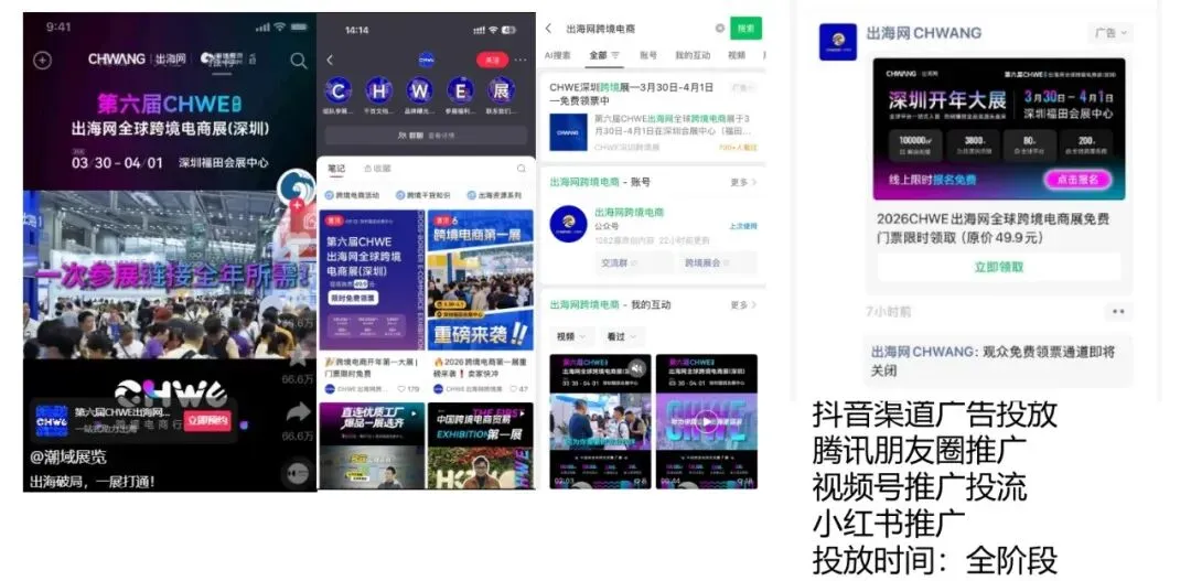 抖音、视频号投流、朋友圈、小红书同步上线全周期投放,短视频 + 图文强势种草让 “3.30 深圳跨境展” 成为行业热词。