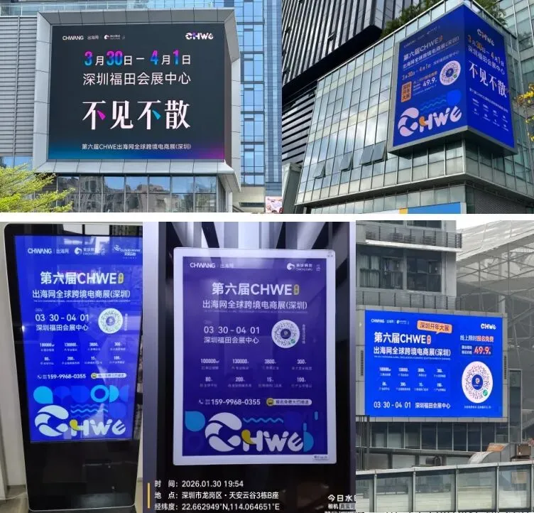 3 月 30 日 - 4 月 1 日,第六届 CHWE 出海网全球跨境电商展(深圳)距离开展越来越近,这场10 万㎡跨境开年顶流大展早已用全网矩阵 + 全城线下强势刷屏!从手机屏幕到深圳街头从产业园区到地铁枢纽,每一处都能看见 CHWE 的身影!