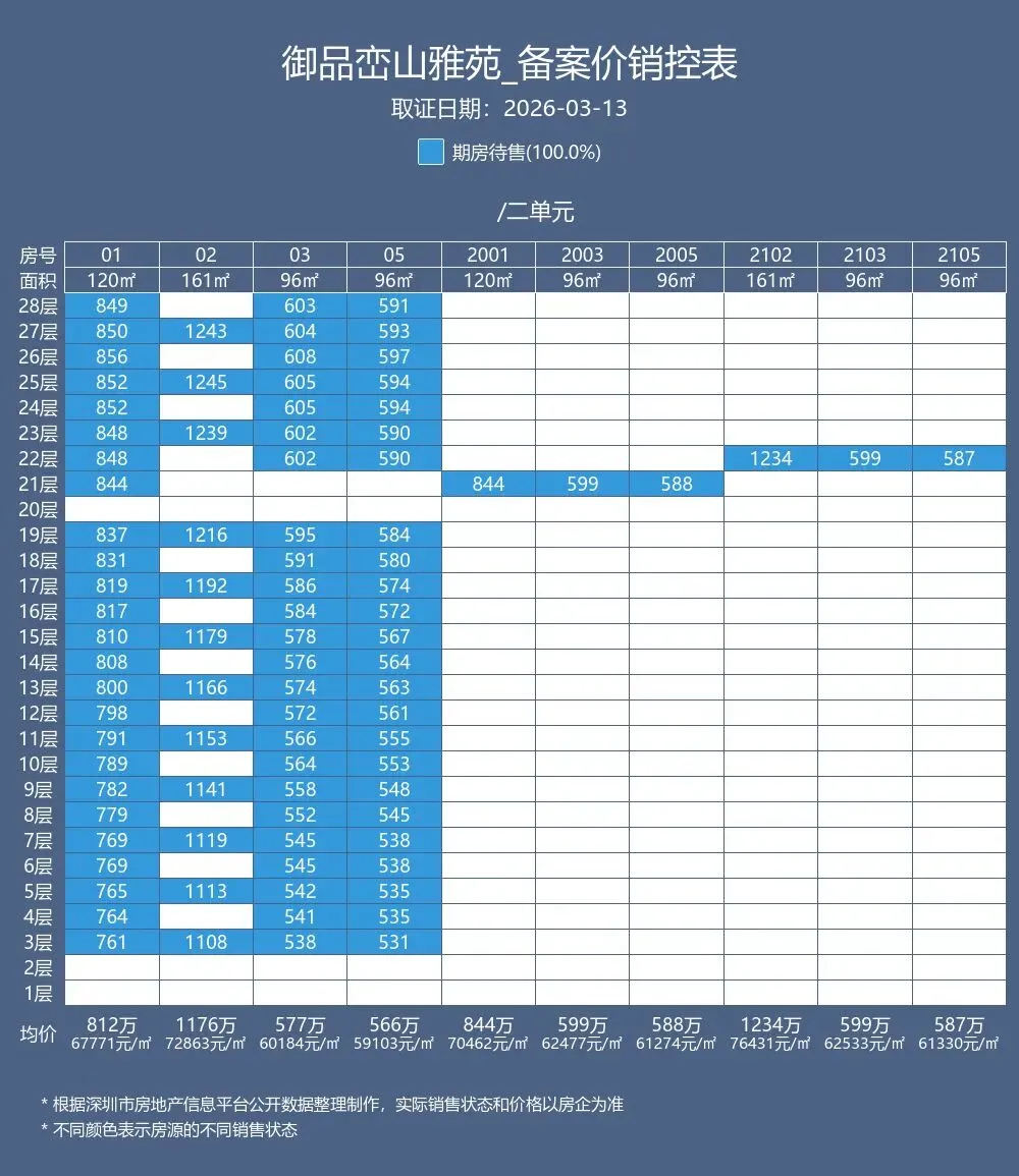 深圳华联·峦山府最新2栋已拿证,均价6.4万,预计下周开盘,折扣方面暂定,去年10月开盘1栋以及6栋均价6.6万,综合折扣约87折,不过开盘两天后又回到了9折,据说本次由于2栋位置最好,也是整个小区楼栋最低的仅28层高,整体均价也低2000一平米,折扣可能不会给太高,最终以开发商公布为准