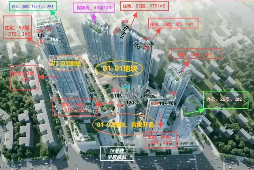 本次首推02地块三单元和四单元:占地总建面约16万㎡,住宅建面约8.37万㎡,商业建面约1万㎡,办公面积约1.7㎡,容积率9.12。