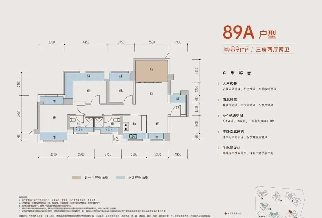 89㎡的3房2厅2卫E户型: