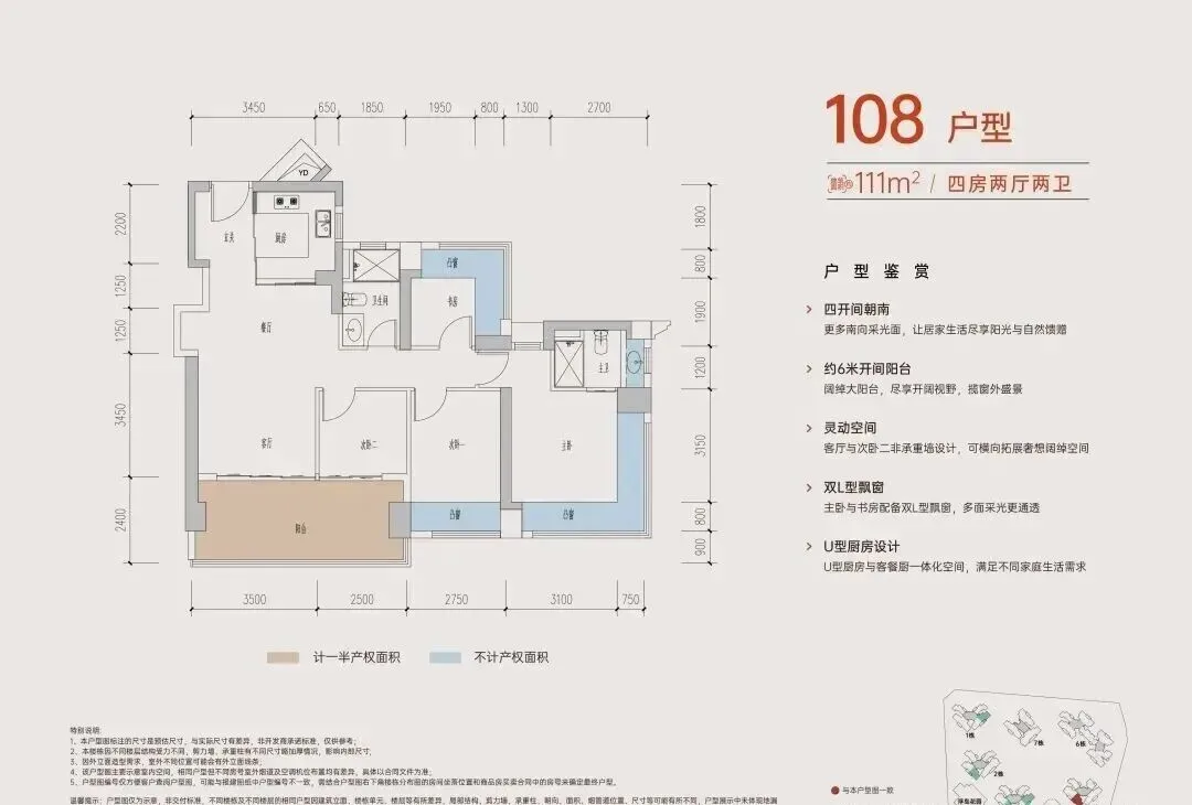 设计的是竖厅格局,进门入户玄关,客厅3.45米开间,LDKB一体化,S墙设计预留冰箱卡槽位,四开间朝南,动静分区,主卧+1个次卧270度大飘窗,客厅连接次卧出6米长大阳台,4个卧室分别做到了主卧16.4㎡/次卧11.2㎡/次卧7.84㎡/次卧6.25㎡(包含墙体飘窗),U型厨房,卫生间干湿分离,得房率约:106%(包含赠送),东南朝向。交通配套:
