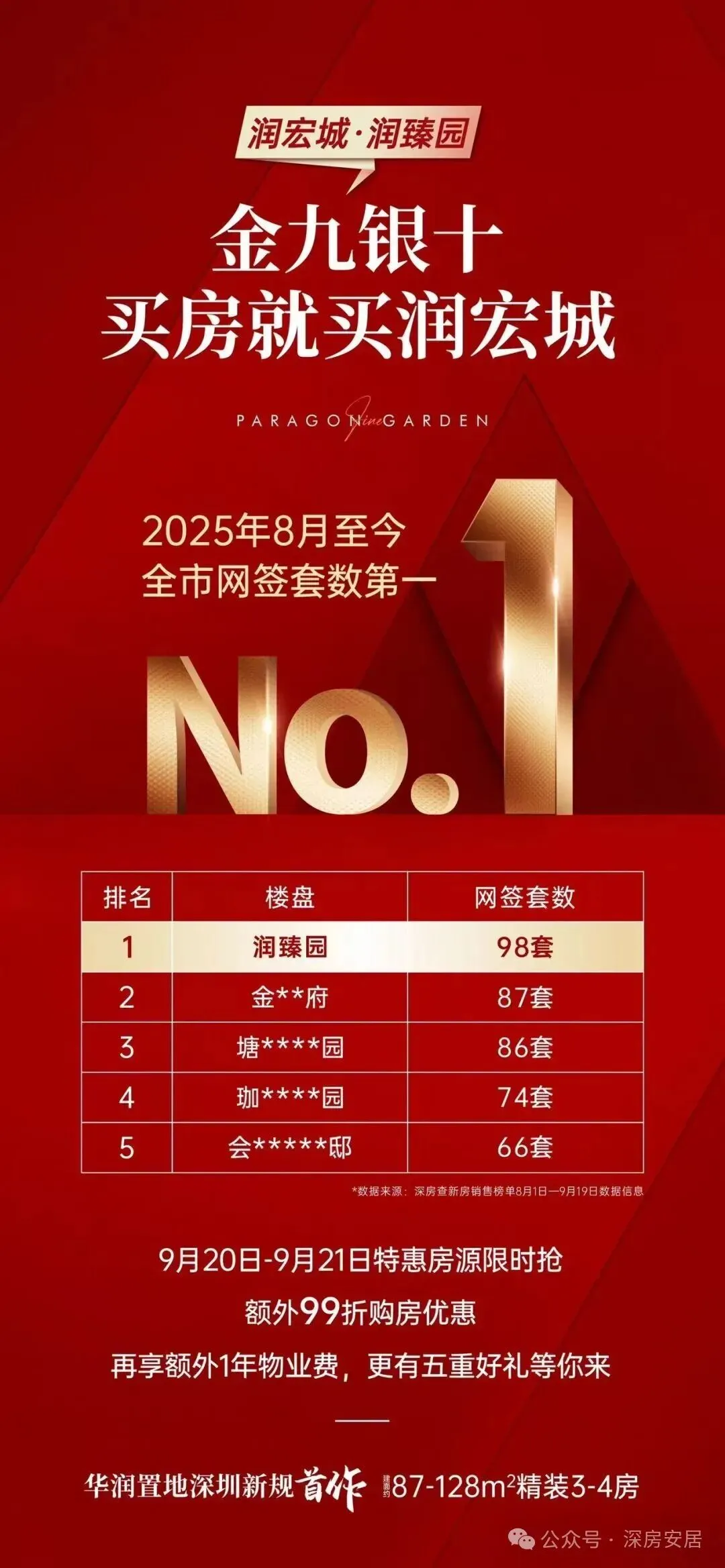 光明华润润宏城二期——润宏城·润臻园加推3栋共约288套,面积89-128㎡,备案均价4万/㎡,单价3.4-4.65万/㎡开盘约9.03折,折后均价约3.61万/㎡,折后单价3.06-4.2万/㎡,折后总价273-531万!可以直接认购润臻园是光明第3个入市新规后建设的楼盘,也是光明体量最大的新盘,总建面达到了382万㎡,13号地铁线“月亮路站”距离约300米,可以读深圳实验学校明湖校区+深圳中学科学城学校。