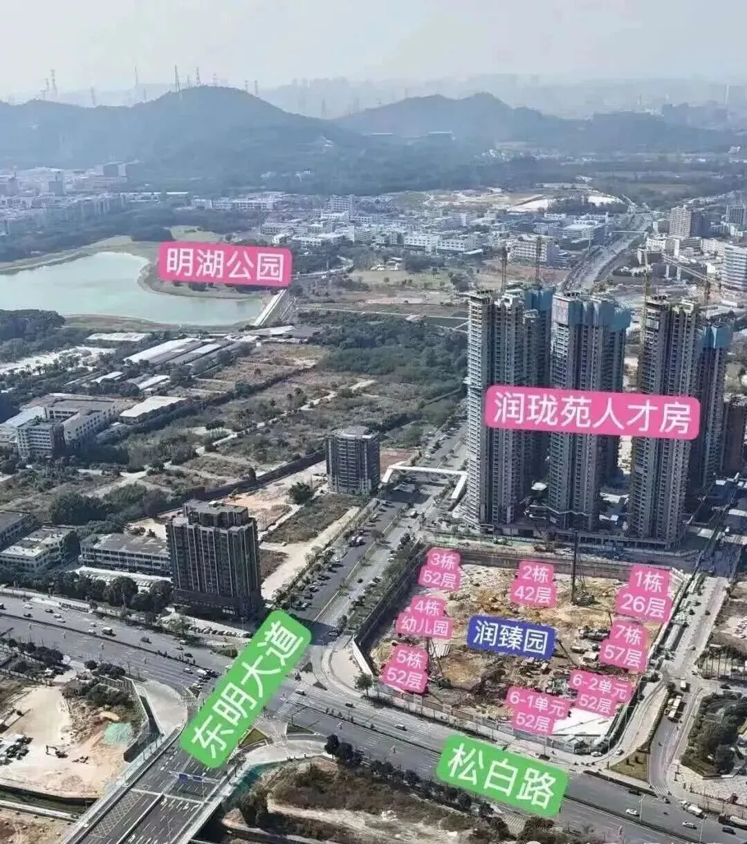 6、华润润臻园是目前整个光明区最高的超高层住宅,总高普遍在52-57层,堪称光明天际线地标。