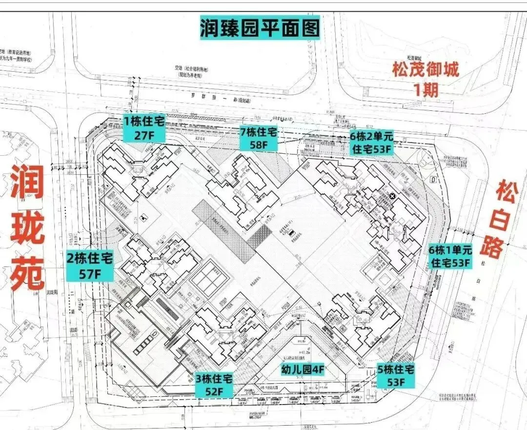 润臻园,由华润集团打造,总占地面积约2.98万㎡,总建筑面积约28.6万㎡,计容建筑面积约21.45万㎡,容积率7.19,绿化率30.01%,共由7栋总高26-57层高的住宅组成,也是光明区域内最高的天际住宅,其中1栋住宅26层,2栋住宅7层, 3栋住宅52层,5栋住宅52层,6栋1单元/2单元住宅52层,7栋住宅57层,4栋规划1所9班制幼儿园。
