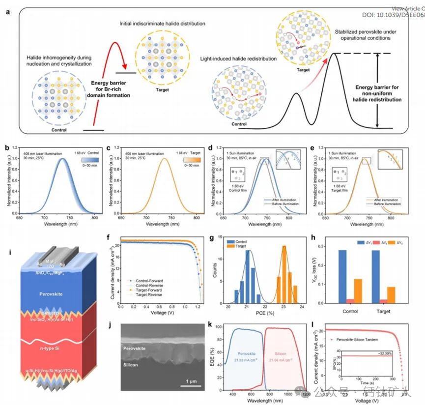宽带隙钙钛矿器件的运行不稳定性,主要由光致卤化物相分离引起,仍然是钙钛矿基叠层太阳能电池商业化的主要障碍。目前的策略侧重于缓解卤化物迁移的影响,而非从根本上解决其根源问题。