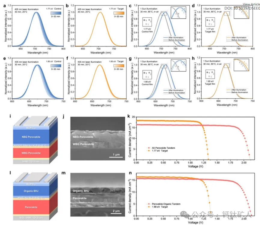 图5 策略在更宽带隙钙钛矿及叠层结构中的推广。