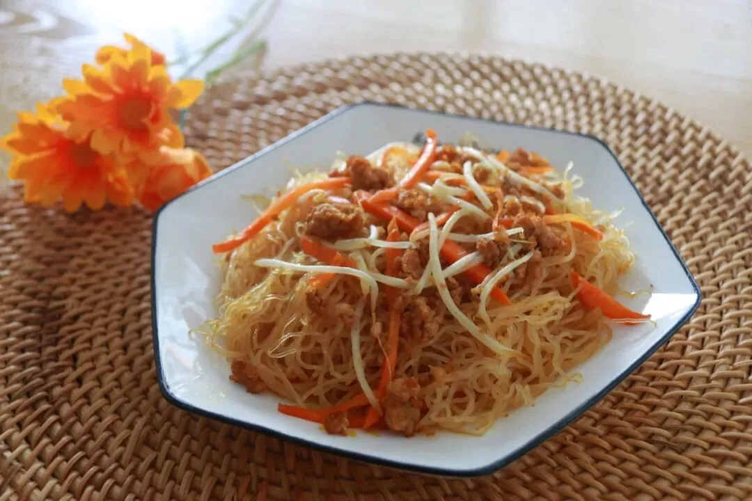 三鲜拌米粉、番茄鲜肉汤、盐水毛豆