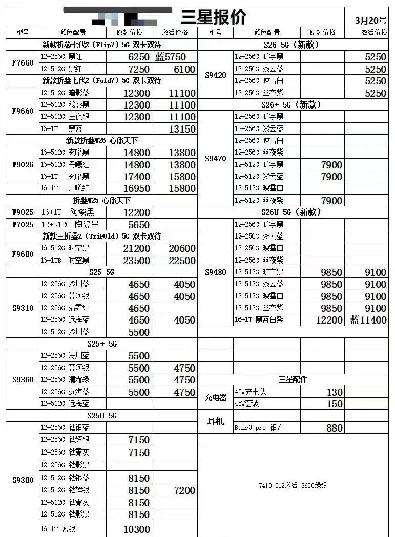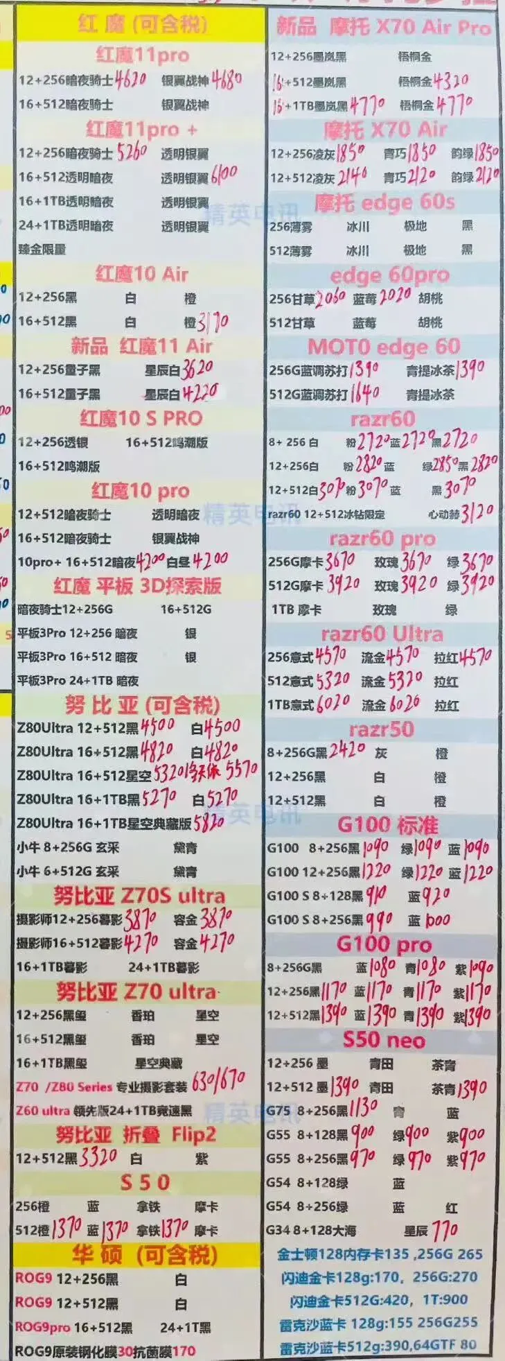 最新全新原封国行华为荣耀小米一加红魔等手机批发报价