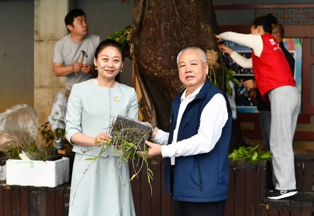 靖轩小学“本草文化”项目筹备良久。学校团队先后赴仙湖植物园调研,并深入黄贝岭靖轩实业股份有限公司开展在地化研究,筛选出适配当地土壤气候的中草药品种。公司董事长张锦友表示:“一棵苗培育一颗星。我们愿与学校携手,通过教联体联动,让孩子们在劳动中提升综合素养,增强文化自信。”在授苗仪式当天,教师代表和家长代表还现场体验了石斛花附生种植,亲身感受本草文化的魅力。这一教联体协同育人的实践,正是学校树立和践行正确政绩观的具体体现,致力于在扎根实际、潜移默化中培育时代新人。