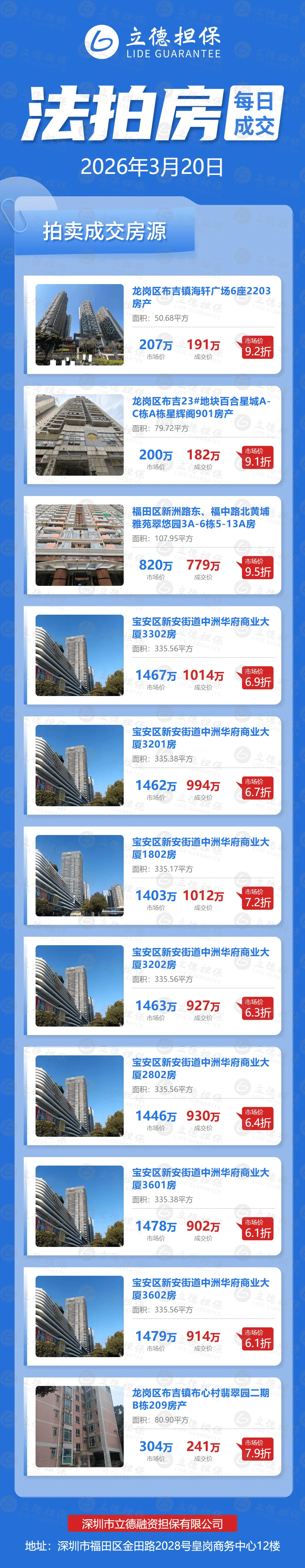 >2026年3月20日 | 深圳法拍房每日成交数据