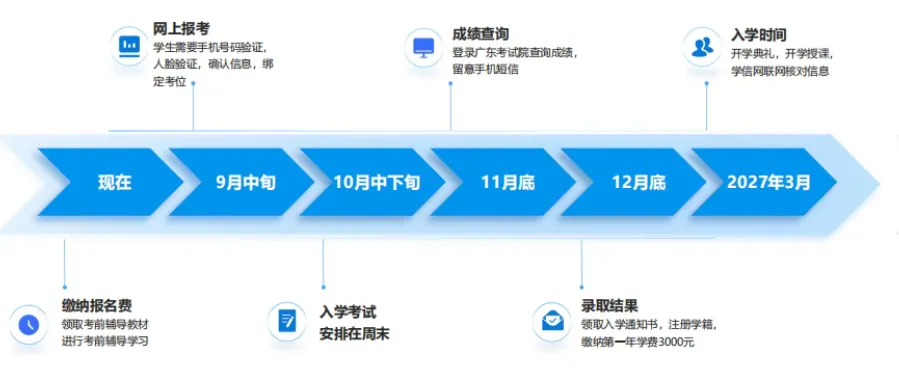 ①预报名阶段:2026年1月-2026年8月(在正规教学点完成新生预报名,锁定院校和专业,领取备考资料复习,确保录取入学)。