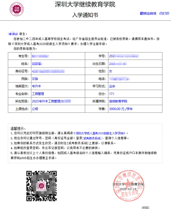 收到录取通知书后,切记是官网缴费,按年进行交学费,不能一次性缴纳学费,也不能将学费交个人收款单位!