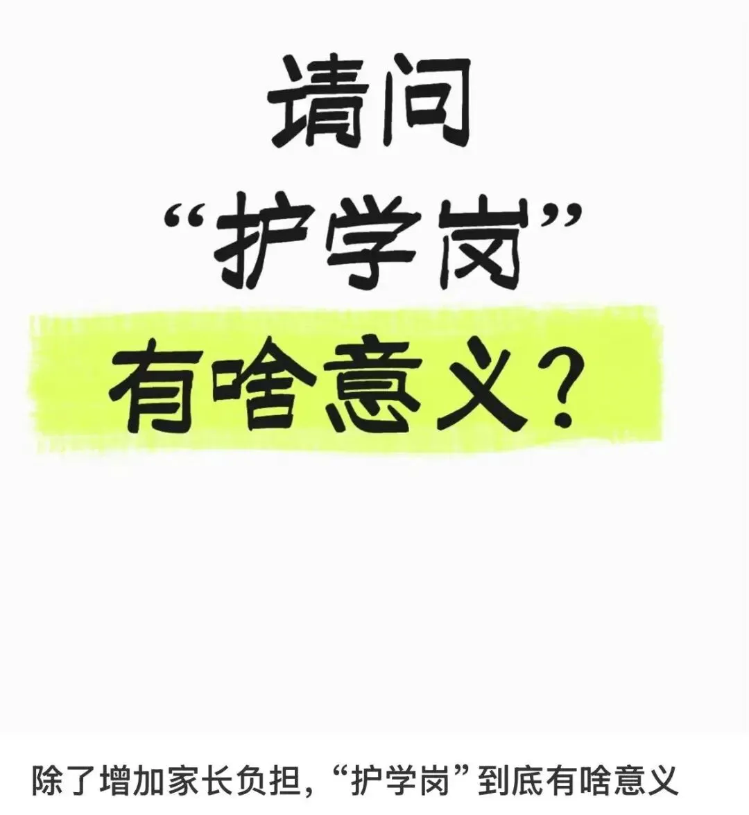 听到这个消息,家长胡琳丽特别开心,一直以来,到学校护学岗执勤对她来说都有不小的负担,她要特意跟公司请假。“大部分家长都很忙,要接送孩子,还要工作。取消之后,我们的压力就小了一些。”胡琳丽称。