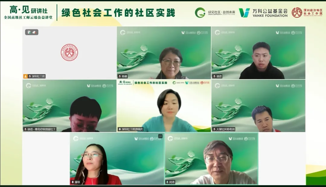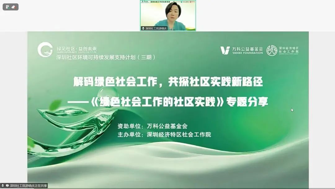 2月6日,由万科公益基金会资助、我院实施的“绿见社区·益创未来——深圳社区环境可持续发展支持计划”首期直播由万科公益基金会资助、深圳经济特区社会工作院主办,聚焦绿色社会工作社区实践。活动含书籍介绍、理论分享、多领域实践案例讲解,还设置圆桌讨论与专家点评,共探绿色社会工作落地与创新路径。