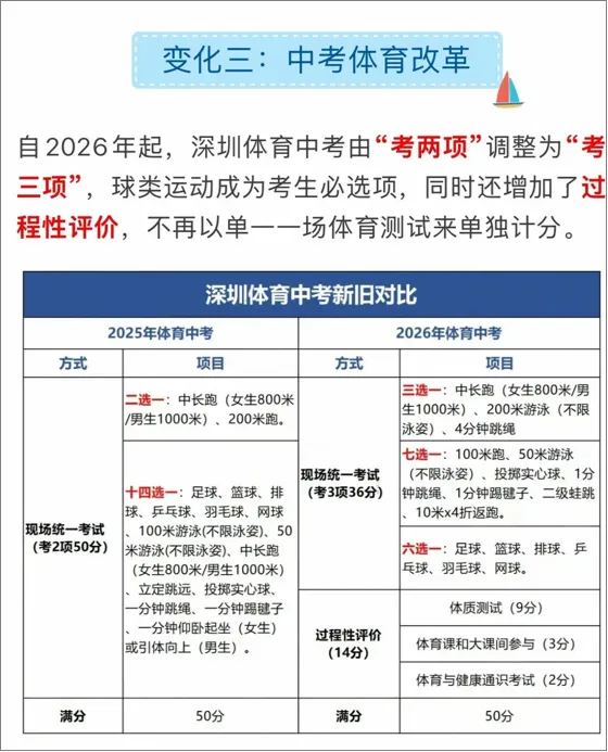 2026年深圳中考于3/20正式启动报名工作,与25年相比深圳中考在试卷分数、体育考试、道法考试形式上发生了较大变化。青藤君整理了有关信息,一起来看~