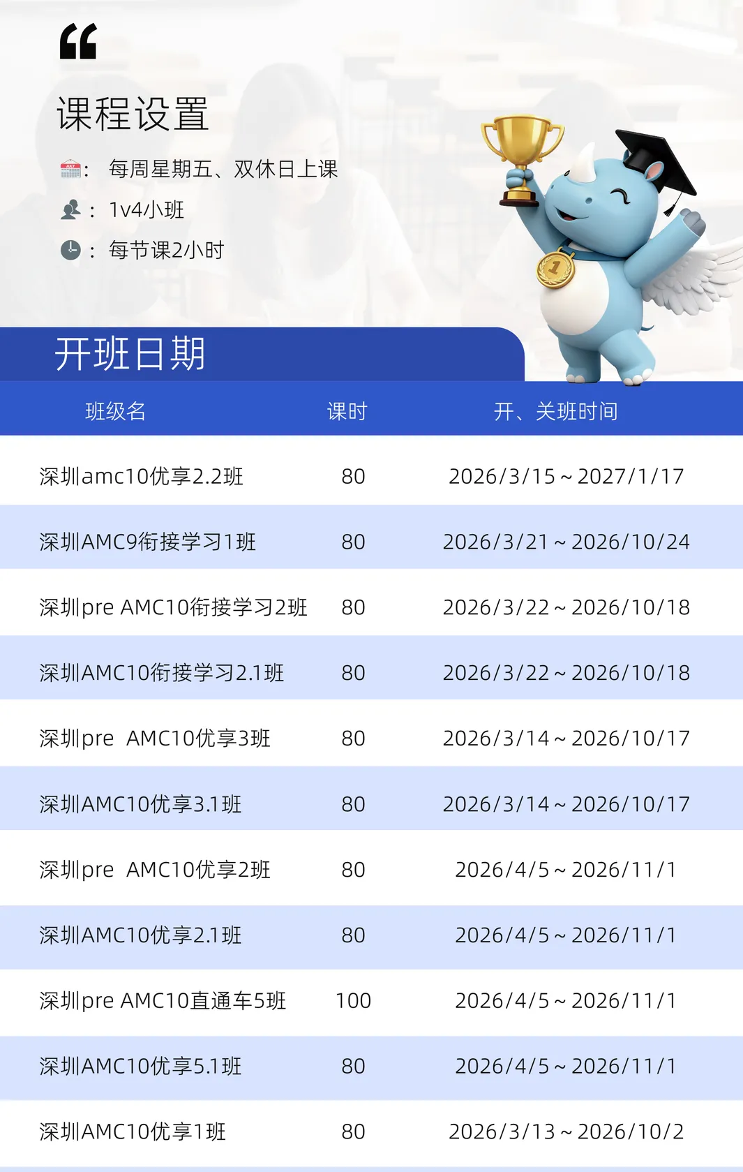 深圳犀牛教育四周年啦!之际,我们推出了深圳袋鼠、AMC8/10/12培训专属福利,为计划参加2027年袋鼠数学竞赛、2027年AMC8考试、2026年AMC10/12竞赛的学生,提供更优质的培训方案。