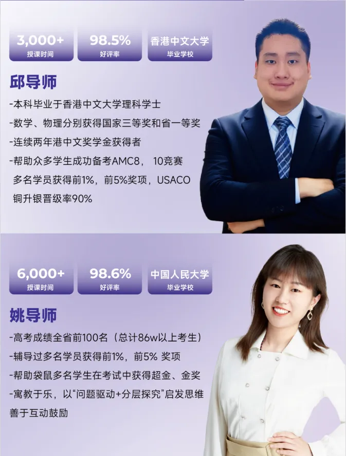 在小班/一对一模式下,老师能实时跟进每位学生的学习进度,针对性解决历年袋鼠数学真题、AMC竞赛历年真题中的重难点。课后配备答疑,确保可以完全掌握上课所学。