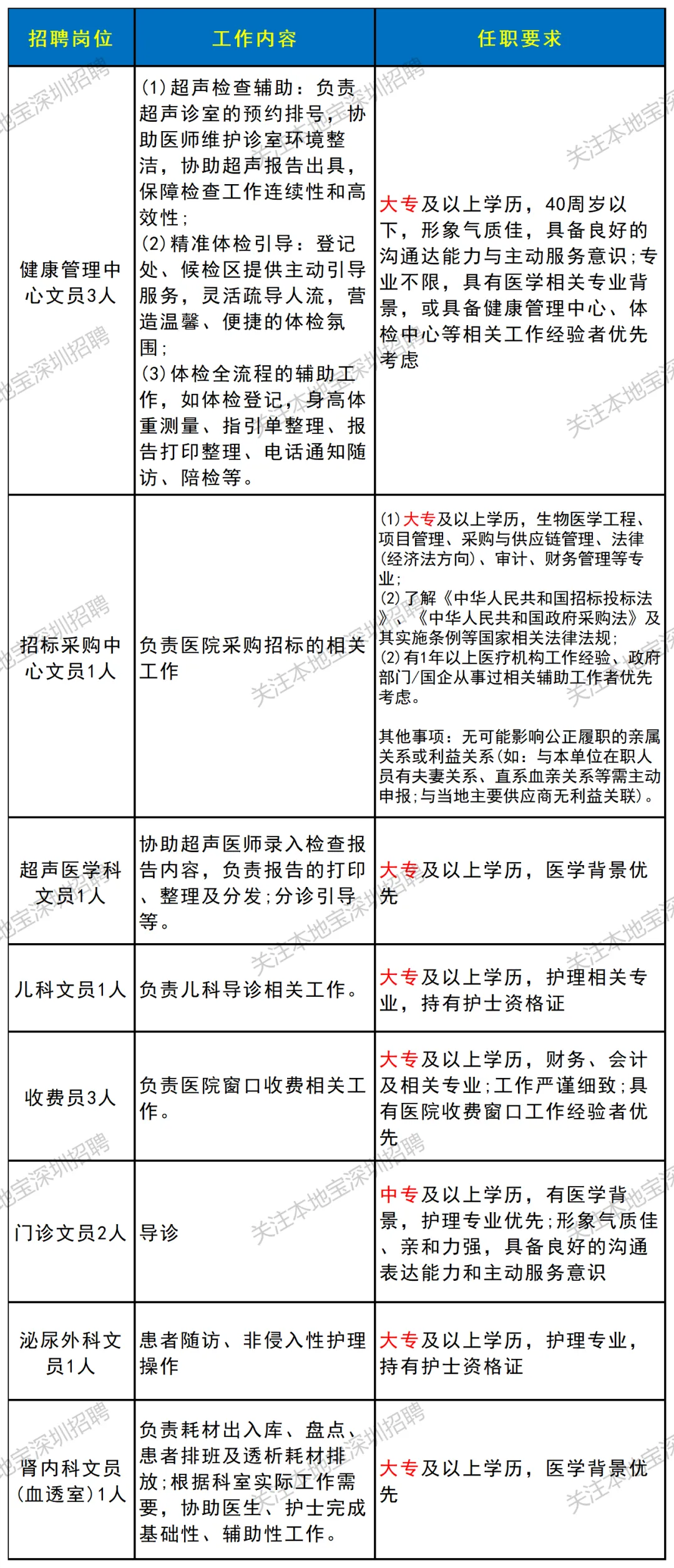 ⭐推荐服务:扫描下面二维码,关注【本地宝深圳招聘】公众号,回复【医院】,即可获取深圳十区医院官方报名入口、报名公告、职位表、报名材料下载