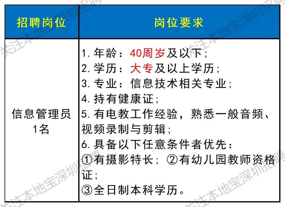 ✅招聘岗位:信息管理员1名,岗位人员性质为非在编合同人员,具体要求如下图所示