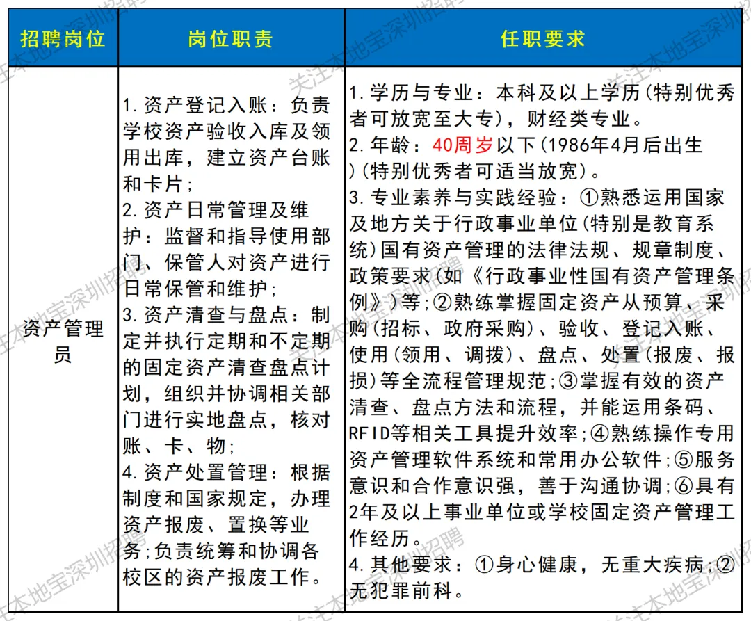 ✅招聘岗位:资产管理员,具体要求如下图所示