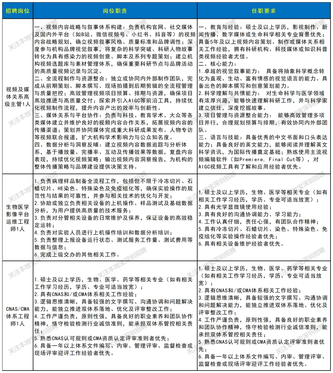 ⭐小编提示:深圳医学科学院还有多个岗位在招聘,点击下方卡片卡片,关注【本地宝深圳招聘】公众号,回复【医科院】,即可获取深圳医学科学院招聘官网入口、查看岗位列表+投递