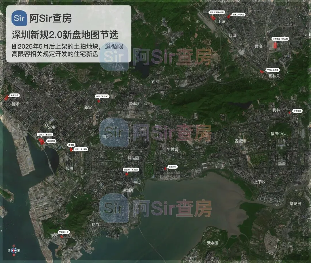 由于我从拍地至今持续有关注「深圳观潮」,期间也放出过不少一手信息。我前期参与过项目部分调研,也直接和设计对话,今天我们用全新的资料给大家拆解「深圳观潮」。其实大部分老友们应该都多少了解南街坊「深圳观潮」的位置,为了照顾到所有读者,以及最新的调整,给大家简单介绍下。「深圳观潮」位于宝安中心区滨海板块,在整个前海湾的规划中,这是唯一一线头排南向海景的位置,在整个大前海里是绝无仅有。项目最让人心动的是独揽一线海景的视野,几乎没有任何遮挡。其实基本的信息我在这条视频介绍过,大家可以花个小几分钟来个大致的了解:从建模中我们可以看出,首推的这一批房源是分布在整个小区最东侧的,大多朝向东南看摩天轮海湾方向,也是最远离沿江高速的。「深圳观潮」由华润置地和招商蛇口双央企联合打造,两家在近年都在深圳出过顶尖案例如「深圳湾澐玺」、「招商玺」、「润玺」等。这次联手出品,要做对标「深圳湾澐玺」同款顶序作品。作为深圳国标新规2.0的第一个豪宅定位产品,是一个无70/90限制,无人才房,无保障房的小高层住宅小区。「深圳观潮」最终是突破了80米的限制,通过底盘叠加做到了近100米的高度,把景观面抬升20米。所以即使是低楼层的景观也不错,大部分户型都能越过前面的「欢乐港湾」解锁真正的一线海景。真实的景观体验可以找我们看景观建模VR,目前已解锁首推的143-330㎡所有房源,每一层每一户都覆盖。「深圳观潮」最初只计划首推1-5/1-6/1-7栋约143-168-188-260㎡四房户型,近日了解到首推还会把1-3栋约245-330㎡户型也放出来,共约220套。