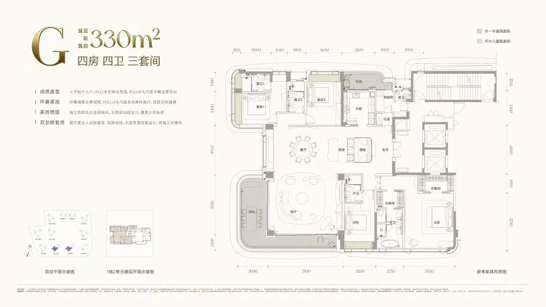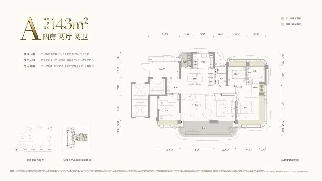 总价预算不足2000万,也可以考虑带景观的143㎡户型。