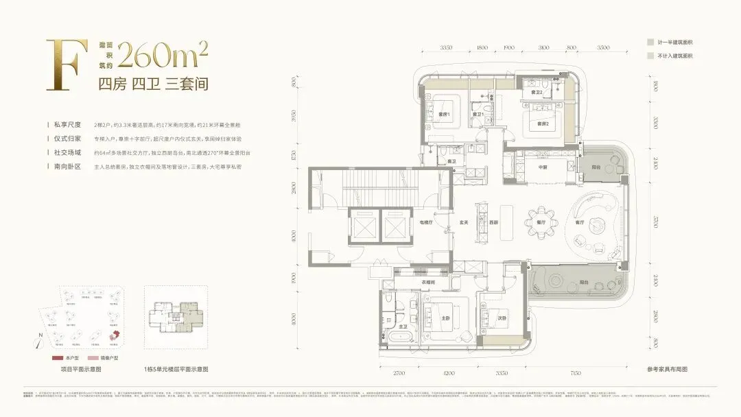 - 约260㎡四房四卫(三套间)全景舱F户型