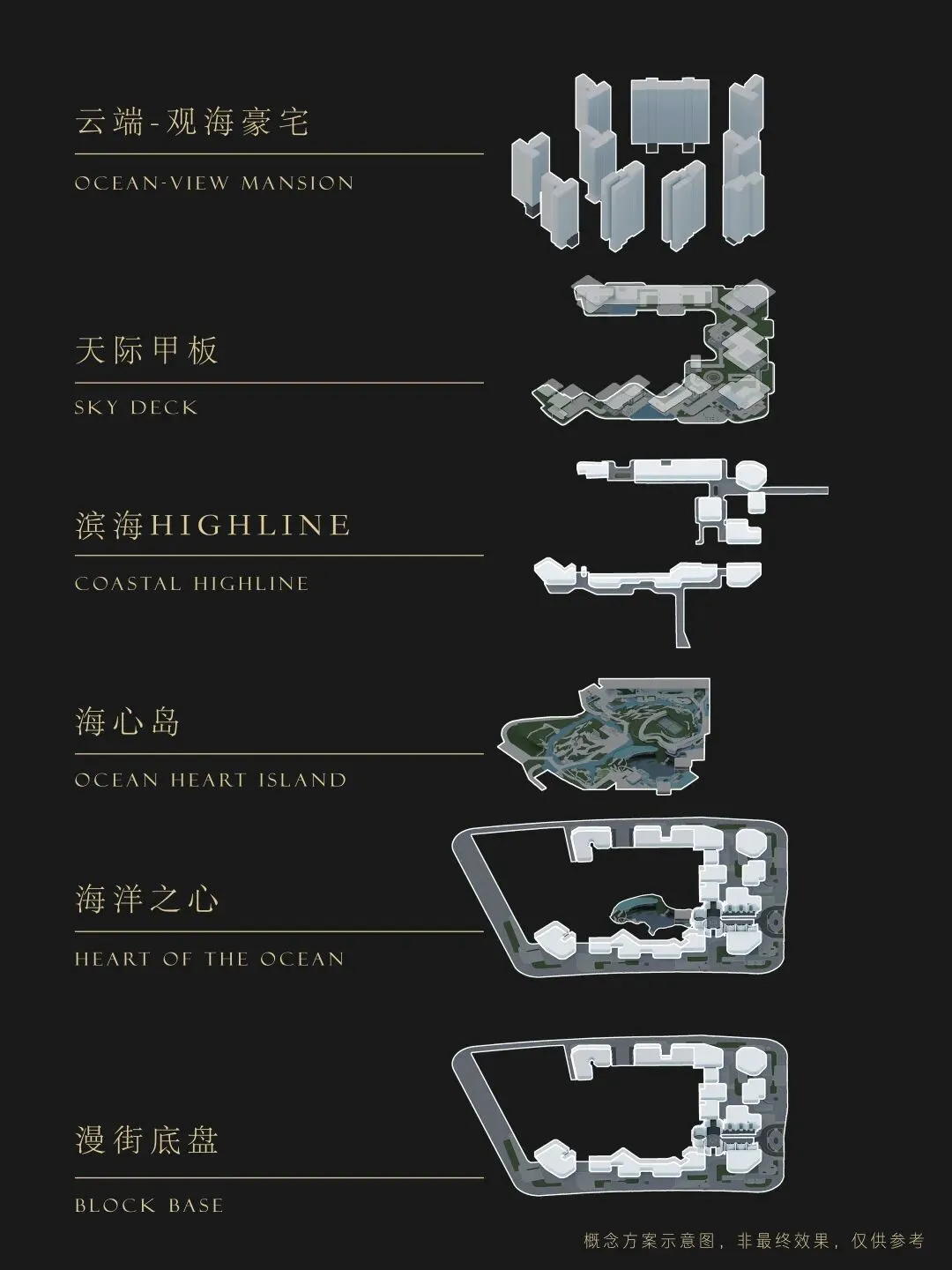 143㎡是黄金面积,无论是过去7090限制,还是如今放开,143㎡这个面积一直都在市场的大部分楼盘延续,并且都卖得相当好。这次推出的1-7栋是入门户型,同时也是整个「深圳观潮」中景观入门户型,能看到前海湾山海城景,也能看到摩天轮。作为最低上车门槛的户型,预计2000万不到的预算在深圳湾、华侨城、香蜜湖都找不到有景观的,套数很少,首推出来值得把握一下。“底盘”概念是近年来很火的一个小区规划的形式,过去多用于占地面积相对较小的项目,说白了就是在有限的土地空间里做出更多层次和配套功能,打造复合更多空间,提高舒适性和实用性。就如汽车的底盘一样,它做得好不好,决定了体验者的舒适性和实用性。不过去年项目的占地不算大,这其中最大的「深圳湾澐玺」(约3.16万㎡)也因为超高层地标的规划,容积率和密度也相对高,单栋占地超1000㎡导致花园占地小。而「深圳观潮」占地约4.25万㎡,容积率3.41的数据中,小区花园占地就显得非常大。这次项目集合了GAD、承迹景观、932、NCDA等全球的设计天团。针对这个底盘概念我特意找了项目的设计对话,以及参加了一次设计访谈,了解如何利用地块占地优势做出一个约8万㎡的超大底盘。这里面有约5.5万㎡的三层立体园林,还有约0.55万㎡的会所(棋牌、健身、宴会、Party House等功能)、室内篮球场、室内网球场、室内恒温泳池和约1.83万㎡街区式商业(体量跟东京麻布台之丘相近),预计由华润万象生活招商的。「深圳观潮」底盘概念跟东京的「麻布台之丘」底盘也有异曲同工之处,而且基于国内住宅的开发特性,「深圳观潮」底盘的层次会更多,有内部小区园林、步道花园、露天水池等,这些都是日本独栋管理的Mansion所提供不了的。基于国内的小区园林文化,「深圳观潮」通过利用底盘打造的园林相当惊艳,也是深圳目前最大的临海300米垂直立体园林,设计灵感来自澎湃大海中的海心岛。立体园林会以“森海·浮屿”的概念,把整个项目分为多层级开发,底盘为“海心”,10栋楼宇为“岛屿”。嗯,这是上次对话设计的时候给我说的,我这种俗人的理解就是滨海主题的大型社区,很多元素都跟海岛、海洋相关。复合花园有很多层,有10栋楼,一栋一花园入户。深圳观潮小区大门设在地块东边,有旭日东升,紫气东来之意。