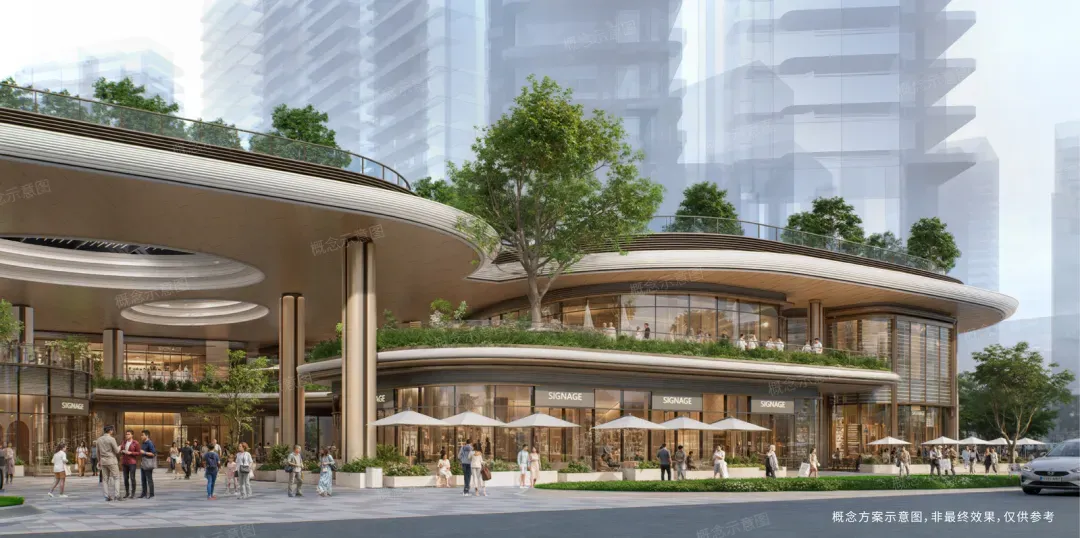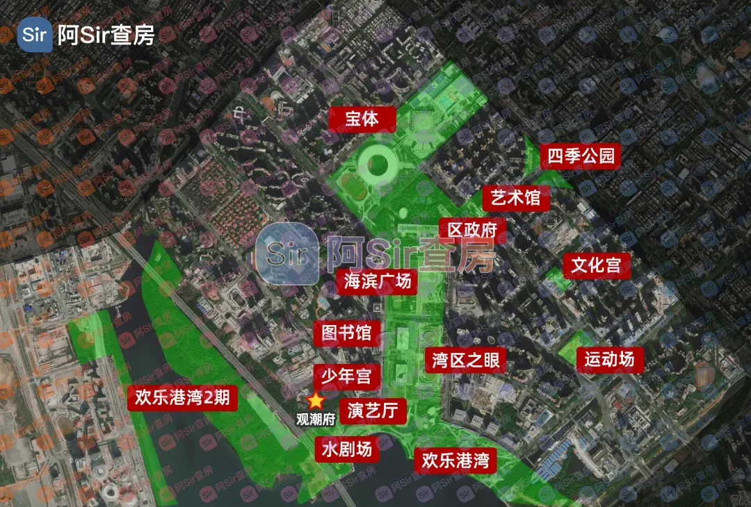 临近「深圳观潮」旁边的还有欢乐港湾西岸、华润万家、西部商务区连片的商业配套。